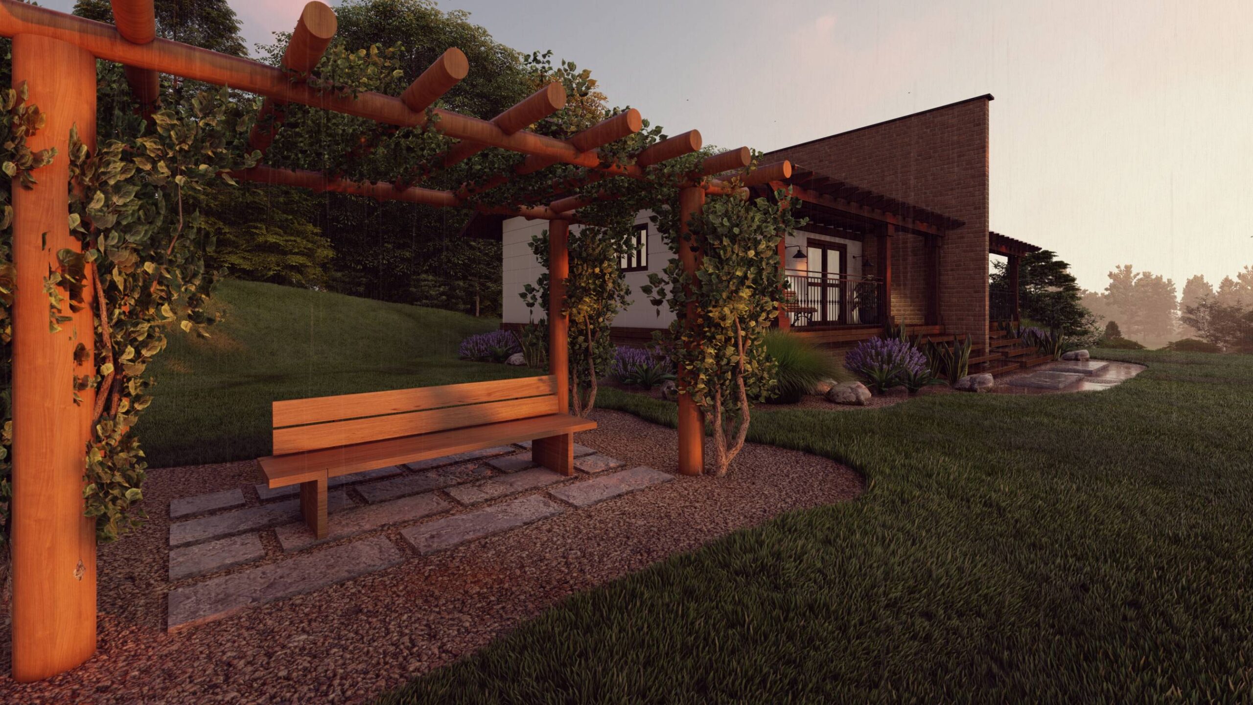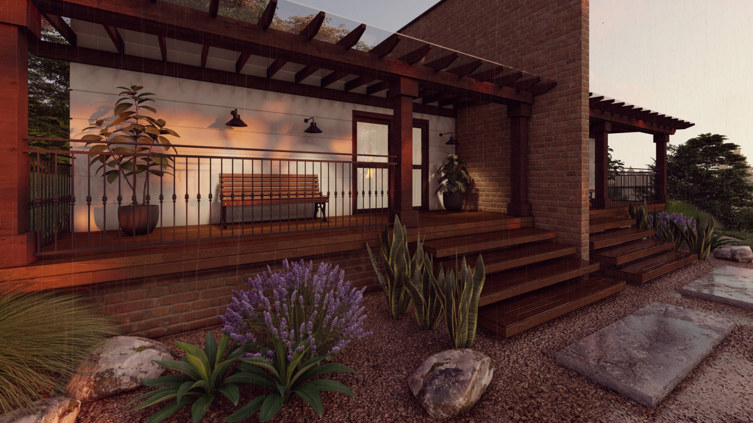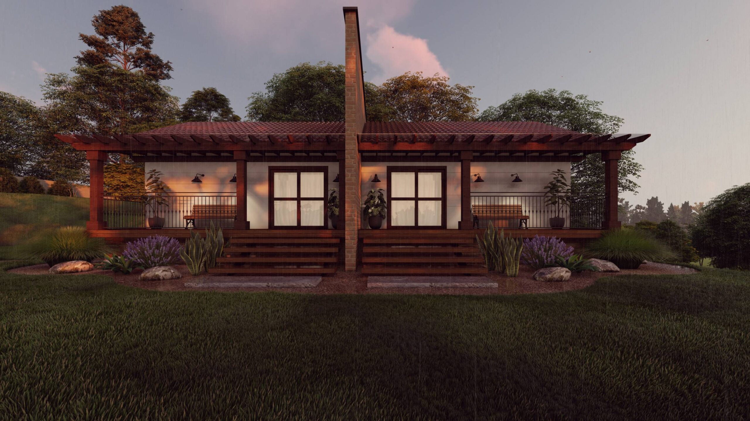O chalés geminados foram projetados para trazerem harmonia com a natureza do seu entorno. Lindos detalhes como a parede central em tijolinho, a presença de madeira e uma sacada elevada com uma linda vista para a natureza deixam esse projeto ainda mais cativante e acolhedor.